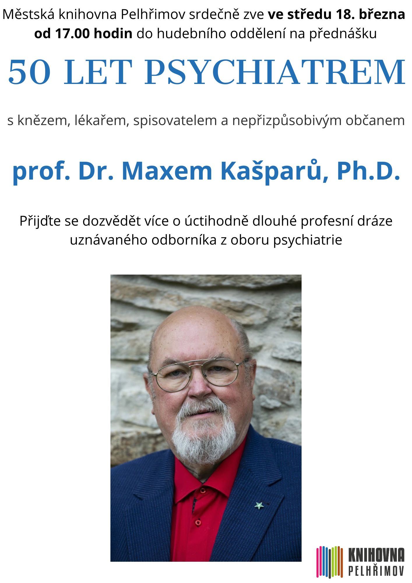 Městská knihovna Pelhřimov srdečně zve ve středu 18. března od 17.00 hodin do hudebního oddělení na přednášku 50 let psychiatrem s knězem, lékařem, spisovatelem a nepřizpủsobivým občanem prof. Dr. Maxem Kašparủ, Ph.D. Přijďte se dozvědět více o úctyhodně dlouhé profesní dráze uznávaného odborníka z oboru psychiatrie…