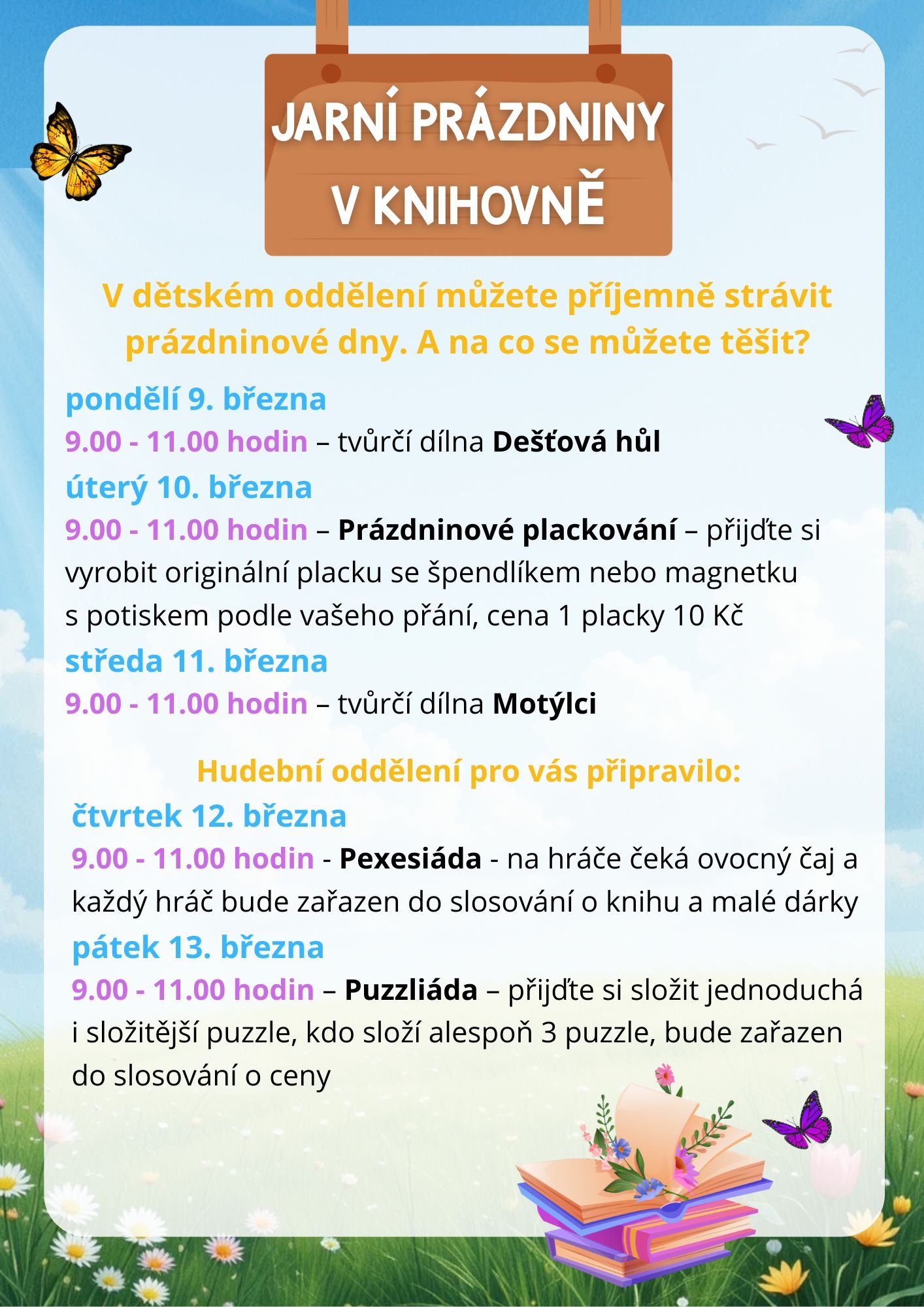 Městská knihovna Pelhřimov zve děti na Jarní prázdniny v knihovně.