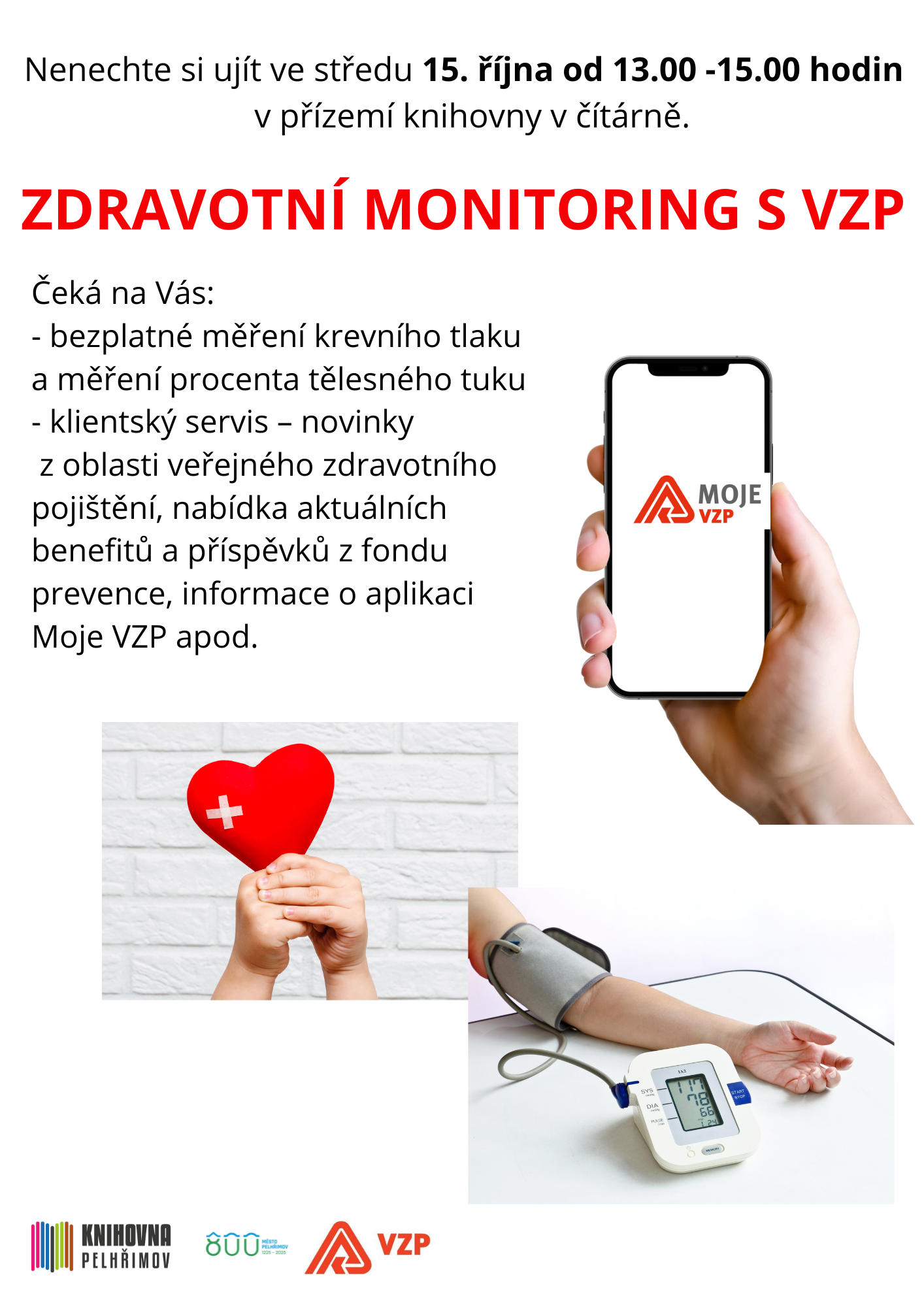 Nenechte si ujít ve středu 15. října od 13.00 - 15.00 hodin Zdravotní monitoring s VZP v přízemí knihovny v čítárně. Čeká na Vás:
