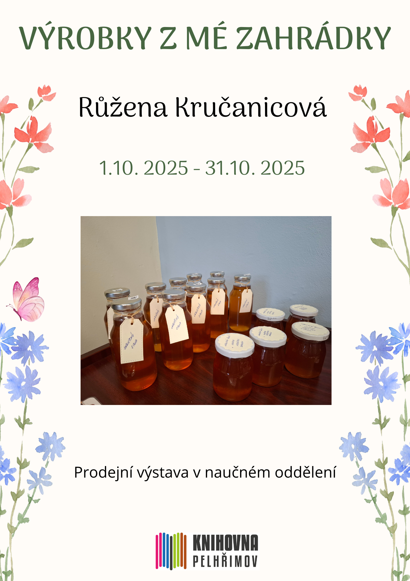 Výrobky z mojí zahrádky a záložky do knih 03.10.2025 V naučném oddělení si můžete během října prohlédnout výstavku Růženy Kručanicové nazvanou Výrobky z mojí zahrádky a záložky do knih.